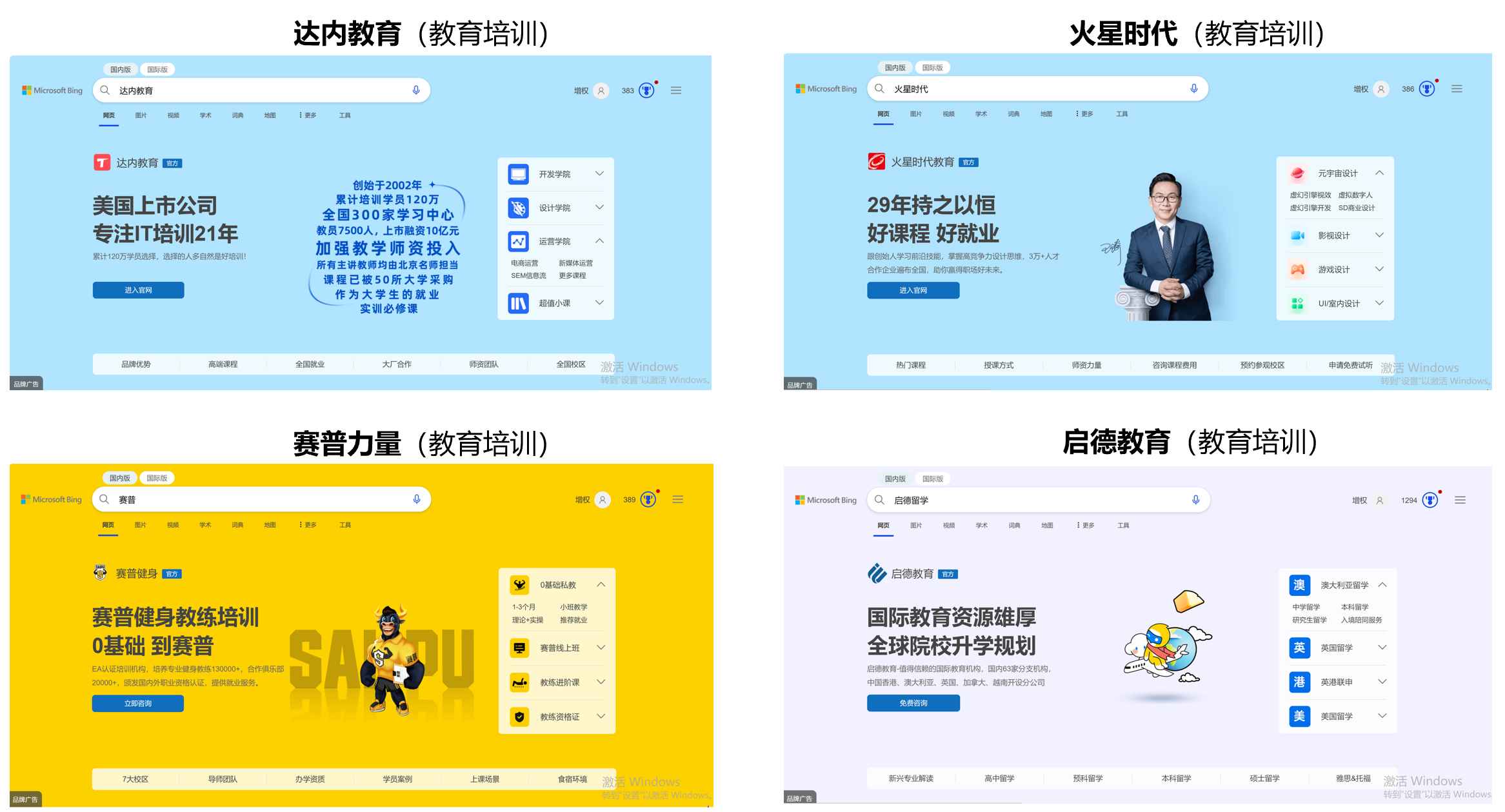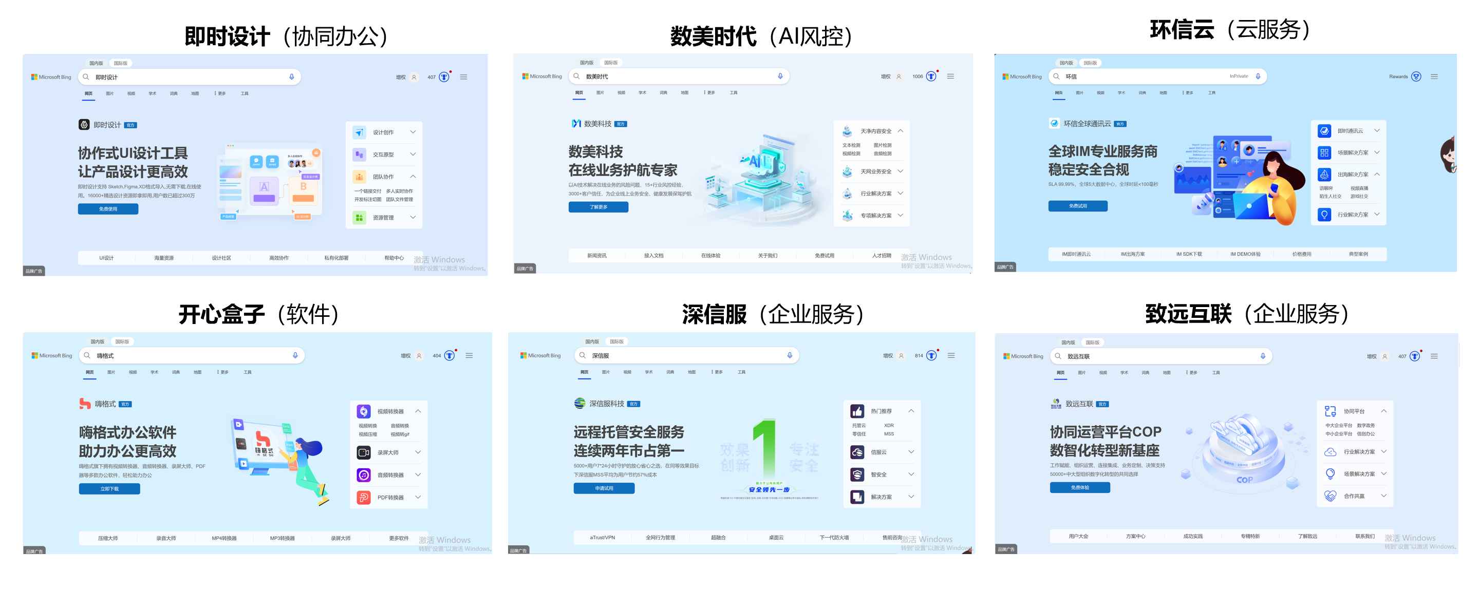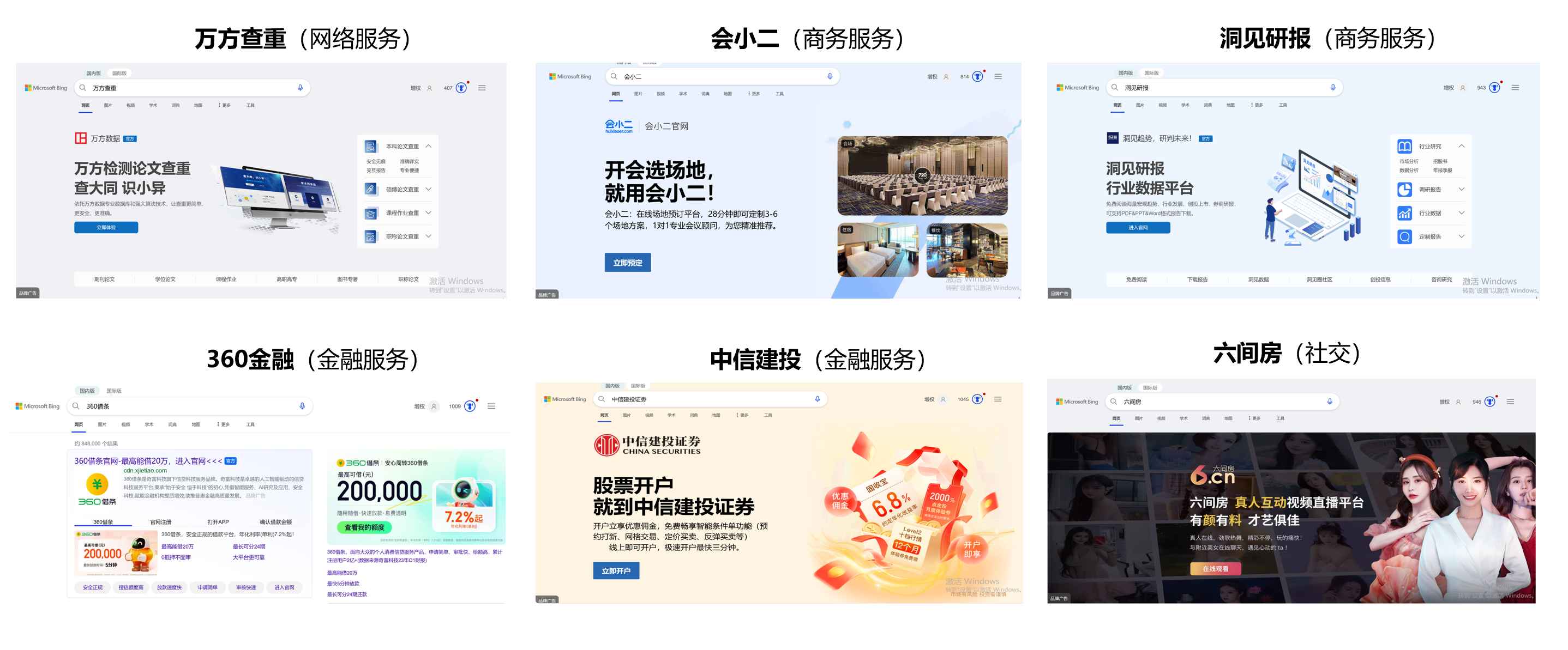 Bing BZA产品线(品牌专区广告)部分重点合作客户呈现